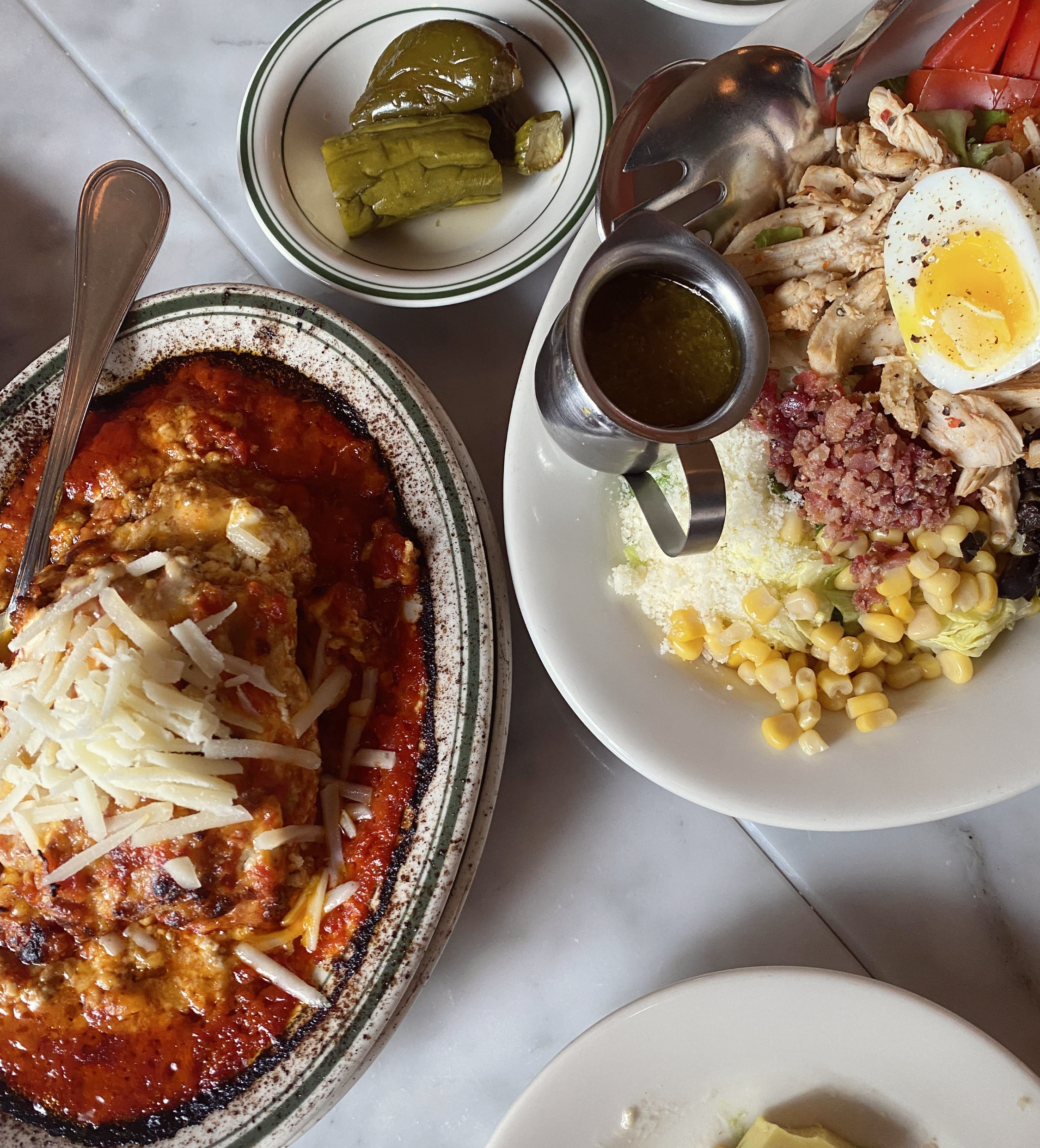 주말 첫 방문에는 클램차우더(1번), 리스 찹 샐러드(3번), 카페 라자냐(4번) 메뉴를 시켰습니다.