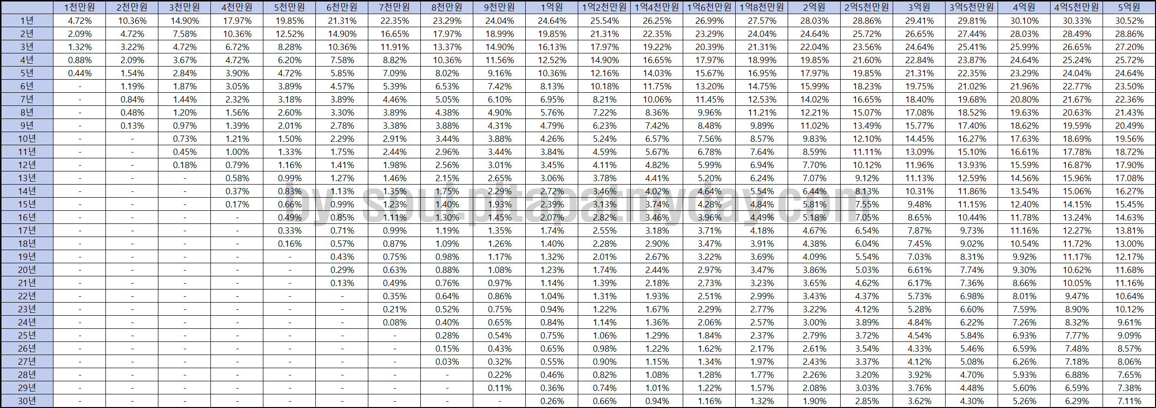- 산출세액: 422만원 / 12 x 20년 = 703만원